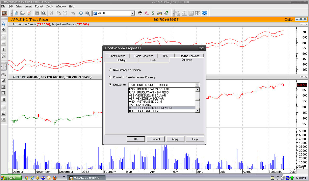 in Euros, Yen oder Pfund anzeigen lassen? Kein Problem mit MetaStock Pro XIII -